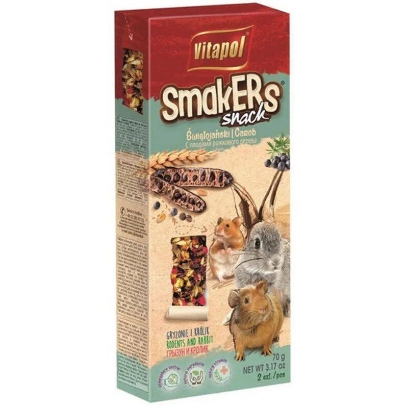 Vitapol Smakers,gəmiricilərin və dovşanların pəhrizini şaxələndirir və əlavə edir. Əsas tərkib kecibuynuzu, yüksək keyfiyyətli qurudulmuş dandelion yarpaqlarıdır. Dandelion A, C və B vitaminləri, kalium, maqnezium, silisium, dəmir, flavonoidlər və karotenoidlərlə zəngindir. Tərkibindəki inulin sayəsində immunitet sistemini dəstəkləyir, xolesterin və qanda qlükoza səviyyəsini aşağı salır. O, həmçinin sidikqovucu xüsusiyyətlərə malikdir, orqanizmi zərərsizləşdirir. Bundan əlavə, Smakers həzm proseslərini tənzimləyən kalsiumla zəngin qatıq damcıları və kətan toxumu ilə zənginləşdirilmişdir.